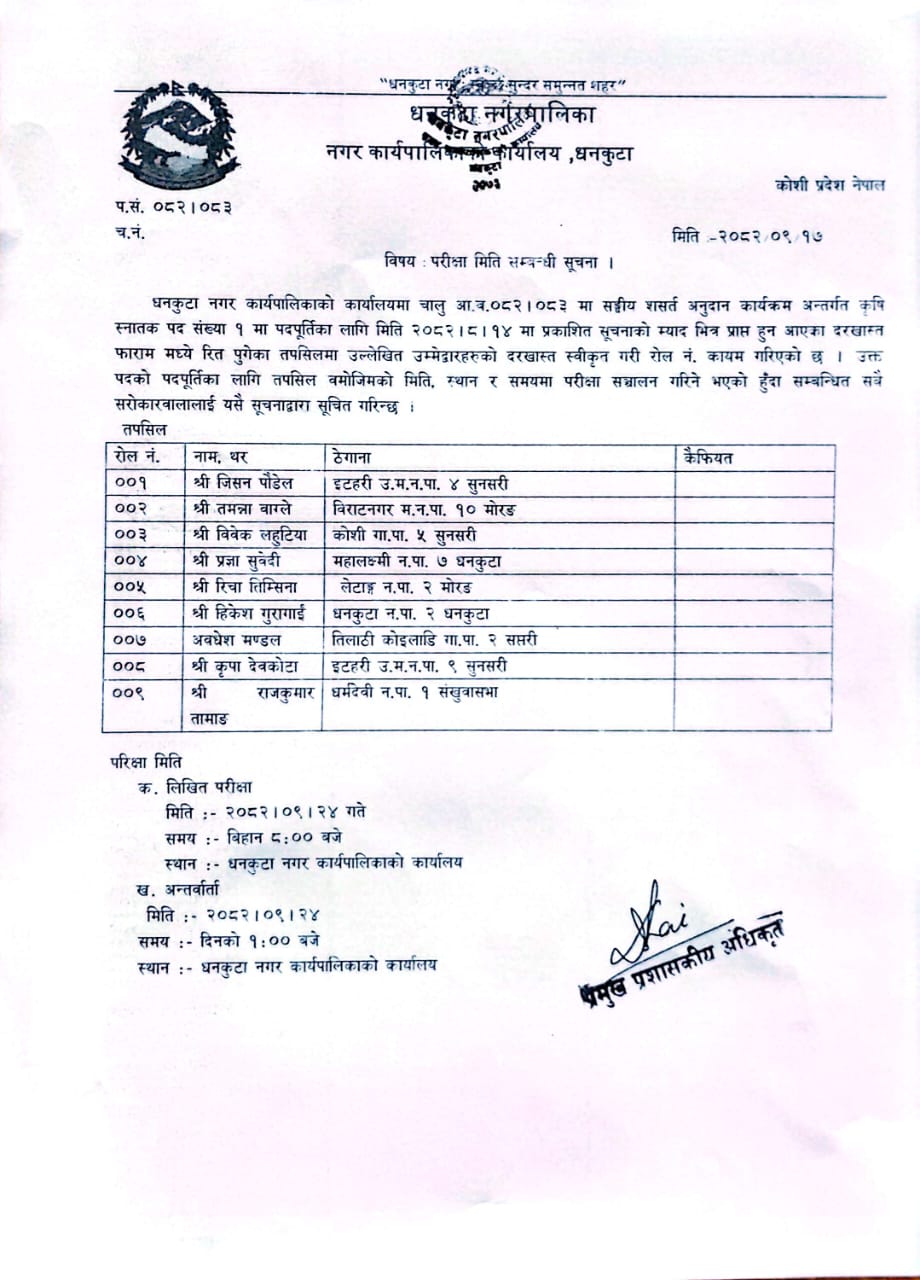 मनोसामाजिक परामर्शकर्ता तथा केश वर्कर पदपुर्तिका लागि लिखित परीक्षा सञ्चालन हुने सूचना । सूचना प्रकाशन मितिः २०८२/०८/०९